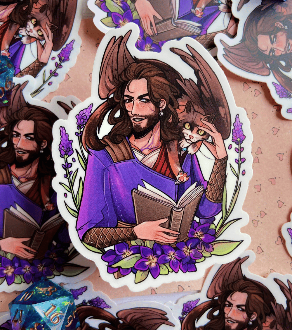 This a themed set of stickers, each character is surrounded by flowers that depict part of their story and personality! I had a lot of fun designing these so heres some fun details: