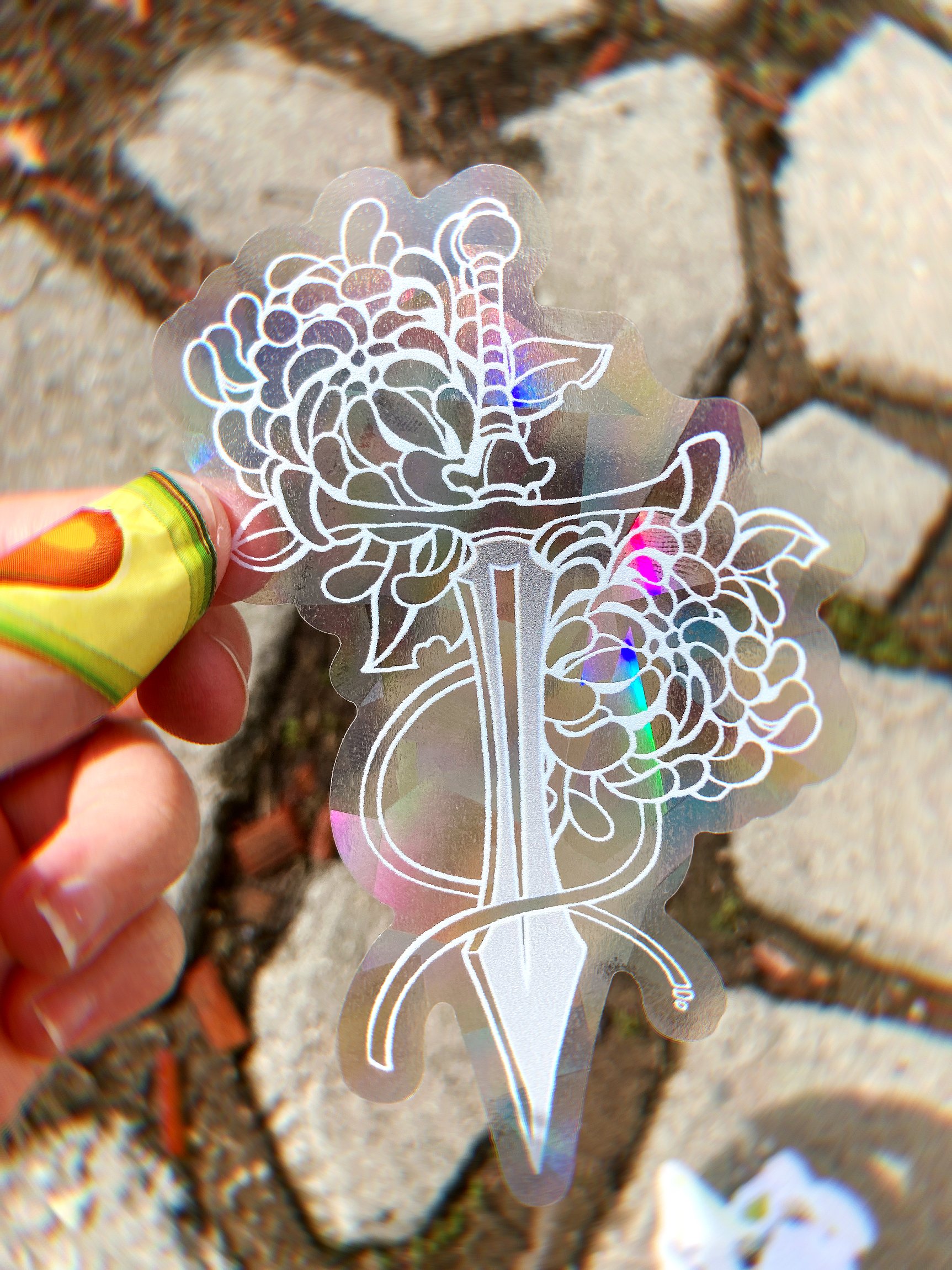Floral Sword, Suncatcher Sticker- Rainbow Maker