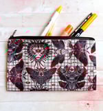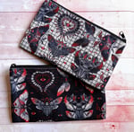 ♡ Canvas pencil bag with a black zipper and black fabric lined interior. This design is double sided, one side has the white background and the other is black!
