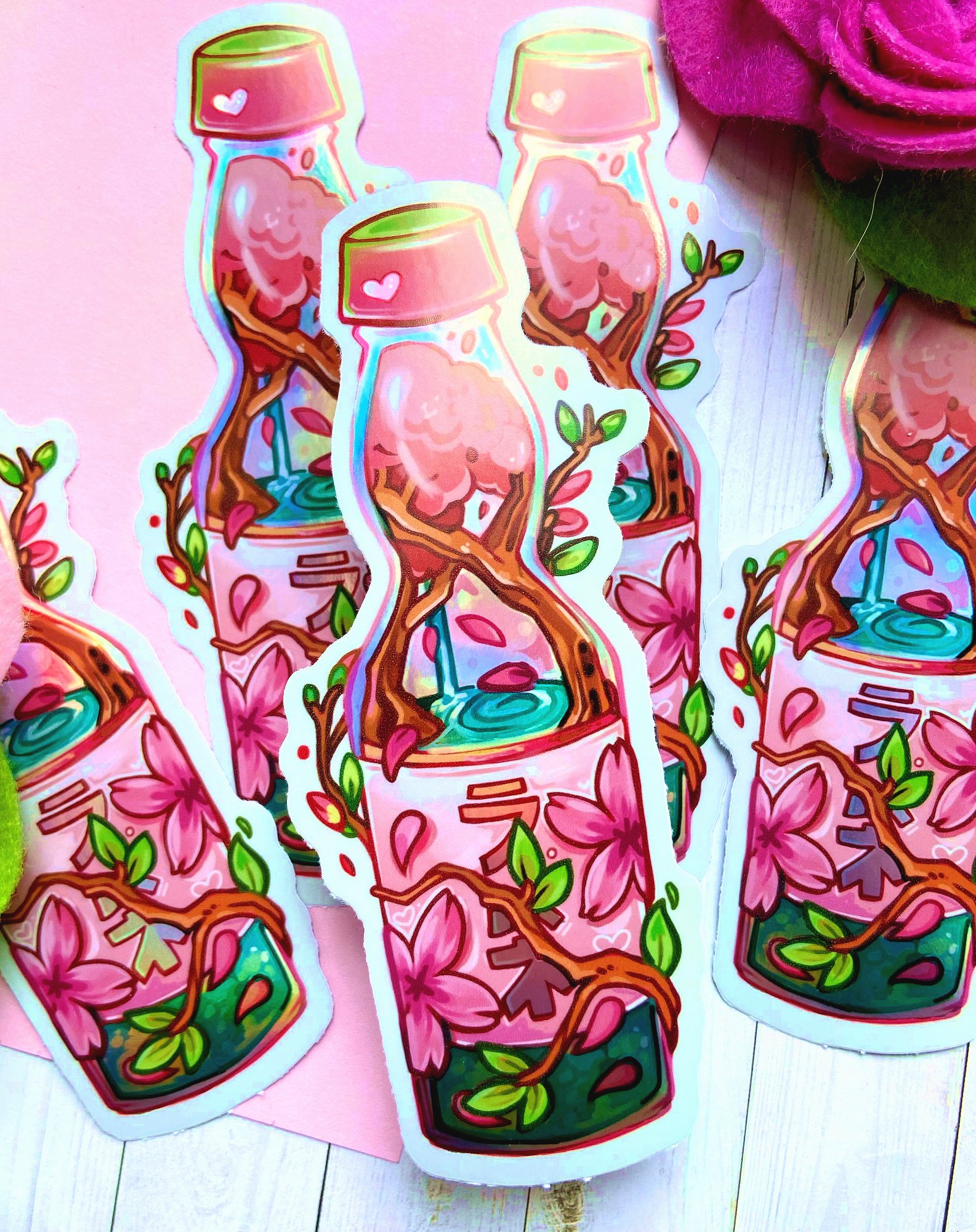 Sakura, Cherry Blossom Ramune | Holographic Sticker